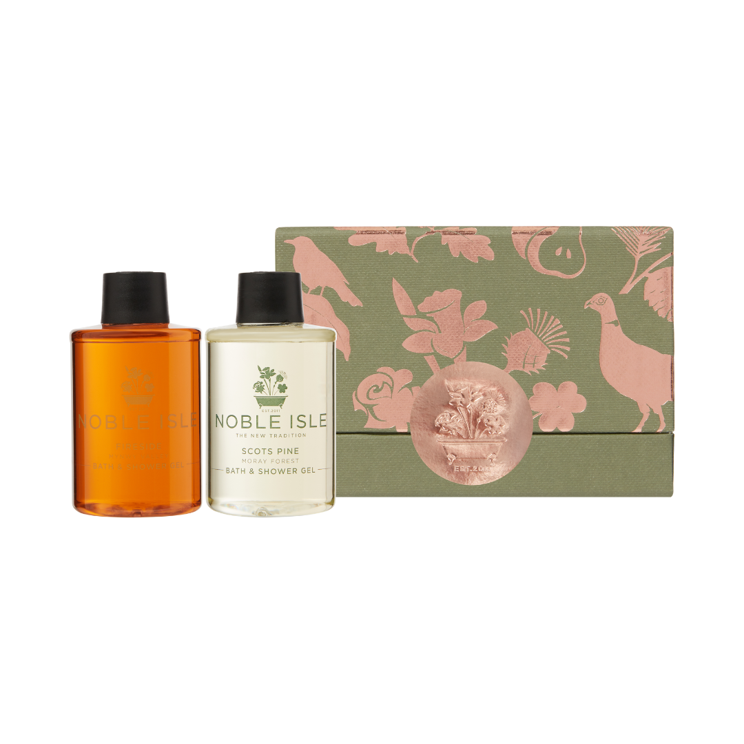 The Woodland Walk Luxury Gift Set, part of our Best of British Gift selection. The fragrance selection in our Luxury Gift collection have been personally curated by Founder, Katy Simpson, designed to take you on a sensory journey through the British Isles. The Woodland Walk Luxury Gift Set, enables you to embrace the serene atmosphere of a British woodland through fragrance. A perfect gift for anyone who loves the calming ambiance of the forest. This elegant set features two luxurious 75ml travel-size Bath & Shower Gels, including the warming Fireside and the invigorating Scots Pine, to transport you to the peaceful surroundings of the forest. The Fireside fragrance is cosy and comforting, evoking the warmth of a crackling fire on a cold winter’s night, while Scots Pine is refreshing and invigorating, evoking the clean and crisp scent of a coniferous forest.