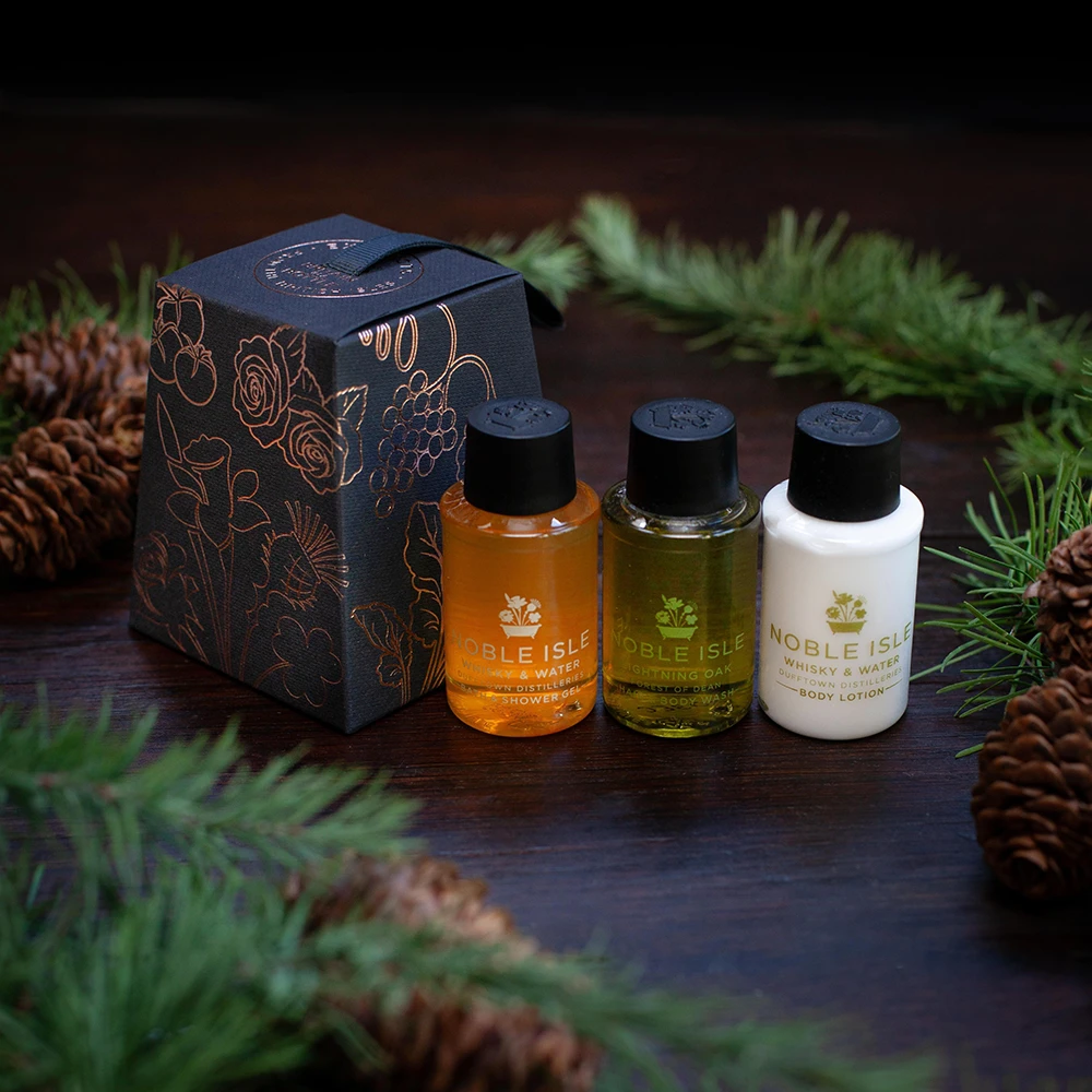 Our Classic Heritage Trinket Box, brings together three favourites, Whisky & Water Bath & Shower Gel and Body Lotion alongside a Lightning Oak Hair & Body Wash in a Luxury stocking filler. The Whisky & Water Luxury fragrance is a modern, dramatic, and rather addictive fragrance, reminiscent of a warm cosy room at dusk with hints of the finest Whisky. A rich fragrance, redolent of the finest, oak-aged single malt, with warm Vanilla and Cedarwood.