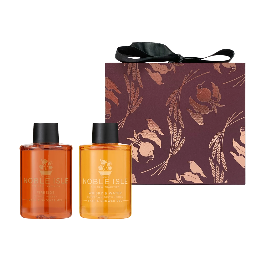 Introducing Gentlemen’s Poise, a distinguished duo in a 2×75 ml gift set – pairing the bold Whisky & Water Shower Gel with the warm, woody Fireside Bath & Shower Gel. These refined blends evoke the sophistication of oak-aged whisky paired with the crackling hearth of a country inn.