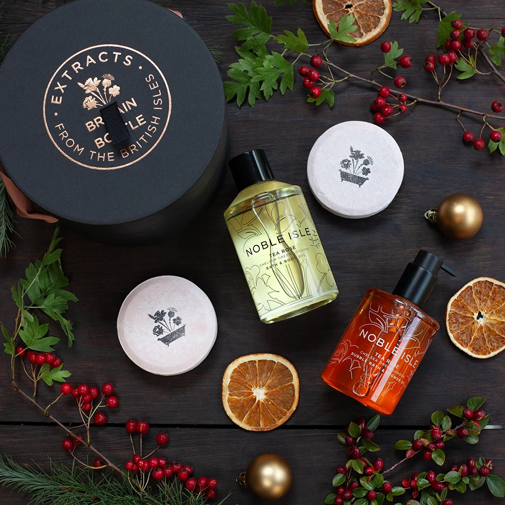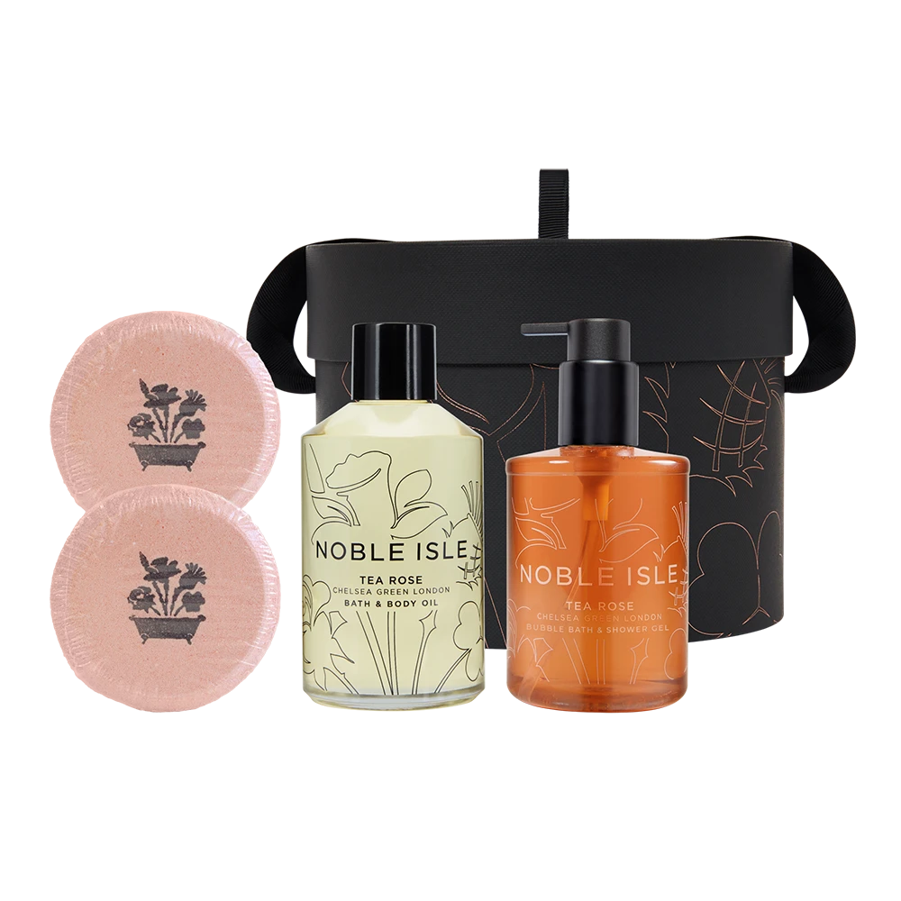 Immerse yourself in a complete rose-infused ritual with our Rose Reverie Gift Set, presented in a beautifully boxed keepsake. Included are two effervescent Bath Tablets, a Tea Rose Body Oil, and a 250 ml Tea Rose Bath & Shower Gel. Use the Bath Tablets to soften and scent your bath water; layer the Bath & Shower Gel to cleanse luxuriously; then finish with the Body Oil to lock in moisture and leave skin luminous. Together, these products elevate your bathing ritual from routine to reverie – each step deepening the fragrance, softness, and sense of indulgence.