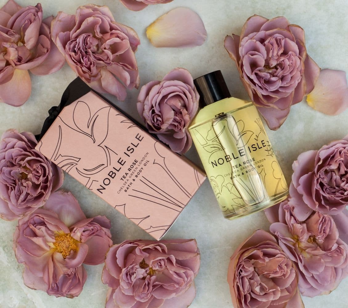Tea Rose Luxury Bath & Body Oil, a pure and charming scent, with all the grace and finesse of a London afternoon tea, steeped in Black Tea Leaves and English Rose Petals, and blended with refreshing notes of Jasmine, Bergamot and Clary Sage.