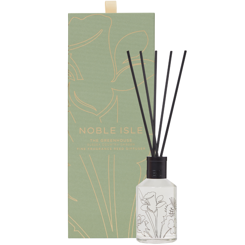 The Greenhouse Luxury Reed Diffuser is part of our British Home Fragrance collection. This botanical fragrance gathers Bergamot, Honeysuckle, and Jasmine, along with refreshing hints of Mint and Melon, and the unmistakably earthy scent of Tomato Leaf. Experience the botanical essence of The Greenhouse, a fragrance that not only captivates the senses bringing the warm, vibrant scents of a summer garden into your home.