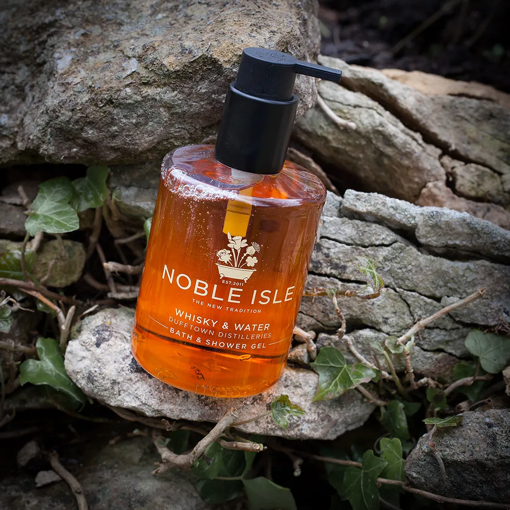 Whisky & Water Luxury Bath & Shower Gel, a modern, dramatic, and rather addictive fragrance, reminiscent of a warm cosy room at dusk next to a roaring fire with hints of the finest Whisky. A rich scent, redolent of the finest, oak-aged single malt, with warm Vanilla and Cedarwood. The best-selling Whisky & Water fragrance is a favourite scent for many and become an addiction that has spread far and wide, even to the bathrooms of the rich and famous.
