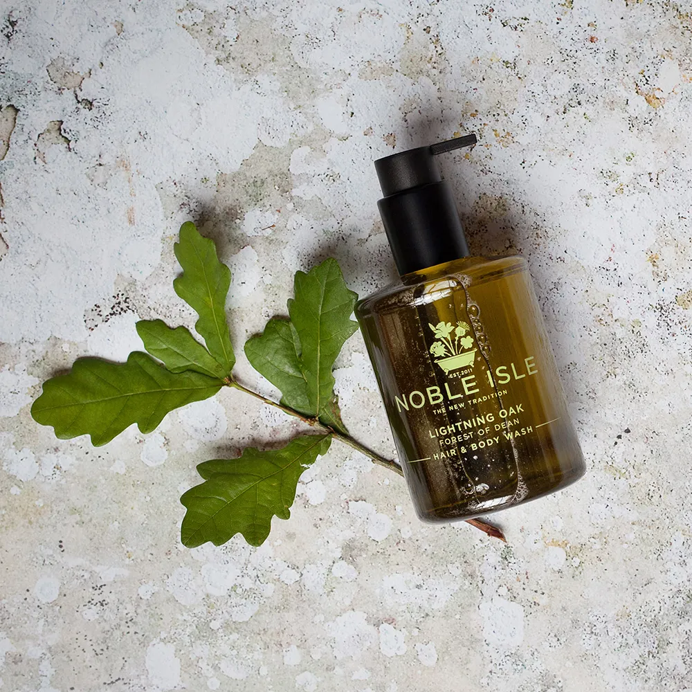 Lightning Oak Luxury Hair & Body Wash, an enduring, handsome fragrance balancing smoky wood aromas with modern notes of crushed Pink Pepper, Bergamot and Clove Bud. The fragrance begins with the freshness of bitter citrus and fresh spices, then reveals the leading note; Vetiver, which results in an elegant, distinguished, modern classic that intoxicates the senses. Enjoy the combined ritual of cleansing the mind, body, and hair with Lightning Oak Hair & Body Wash. This multi-tasking Hair and Body wash gently cleanses the body and your hair. The wash produces rich foam that easily rinses away, leaving your hair clean, bright, and shiny. Can be used on colour treated hair and is gentle enough for everyday use.