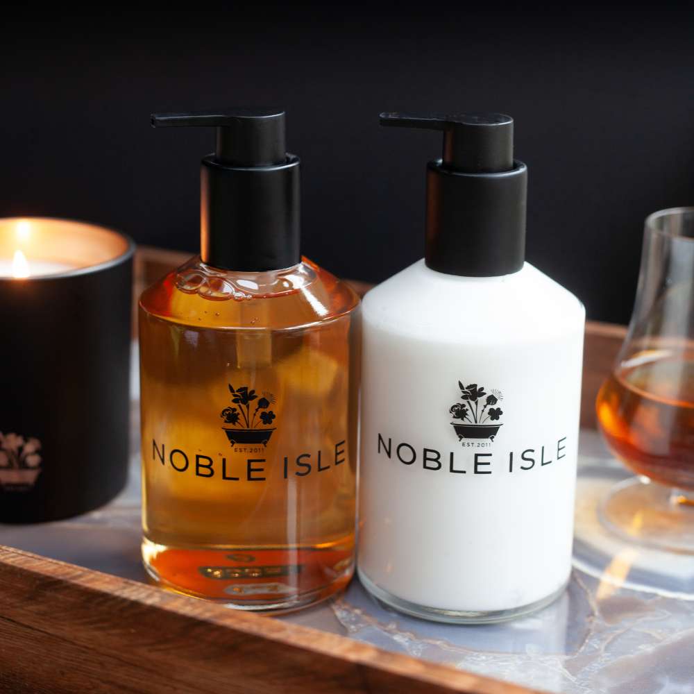 Introducing the Whisky & Water Luxury Refillable Hand Lotion, a perfect blend of nourishing comfort and sustainable design. Encased in a 300ml glass bottle showcasing Noble Isle’s Whisky keg bottle design, this refillable Hand Lotion reduces plastic usage while adding refinement to your hand care routine.