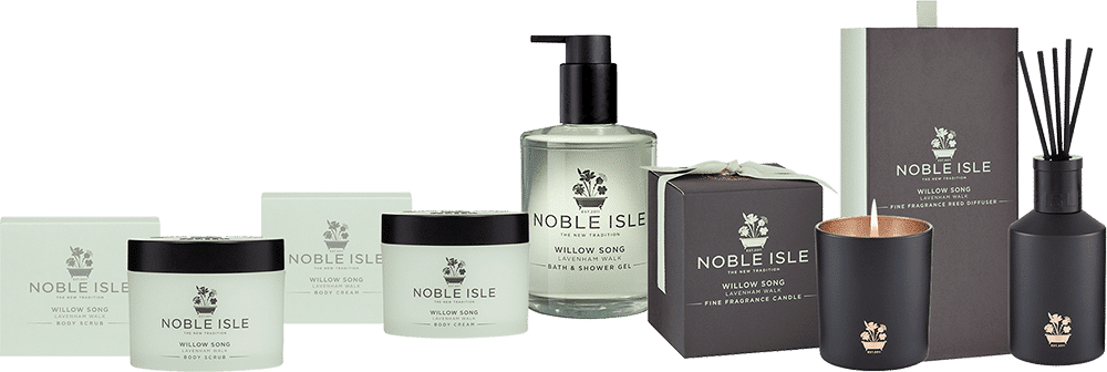 Noble Isle sources water lily and willow from the medieval town of Lavenham: willow bark from the Lavenham Woodland Project, a planting initiative located by the famous Lavenham Walk, a two-mile promenade through the green and pleasant English countryside; and water lilies plucked from the 600-year-old spring-fed lake at Lavenham Hall, which has been given new life as the focal point of Kate Denton’s Sculpture Garden.